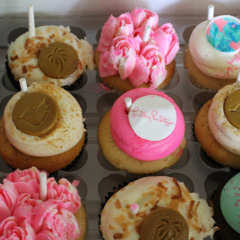 "The Georgetown Cupcake x Lilly Pulitzer Resort Dozen includes 2 Valrhona chocolate cupcakes with "Lilly Green" vanilla buttercream, 2 Pineapple Banana Toasted Coconut cupcakes, 2 "Tropical Flower" vanilla cupcakes, 2 Citrus Blossom cupcakes, 2 "Lilly Pink" Vanilla & Buttercream cupcakes, and 2 Salted Caramel "Beach" cupcakes. 15% of sales of this dozen will be donated to the Hope For Henry Foundation."
